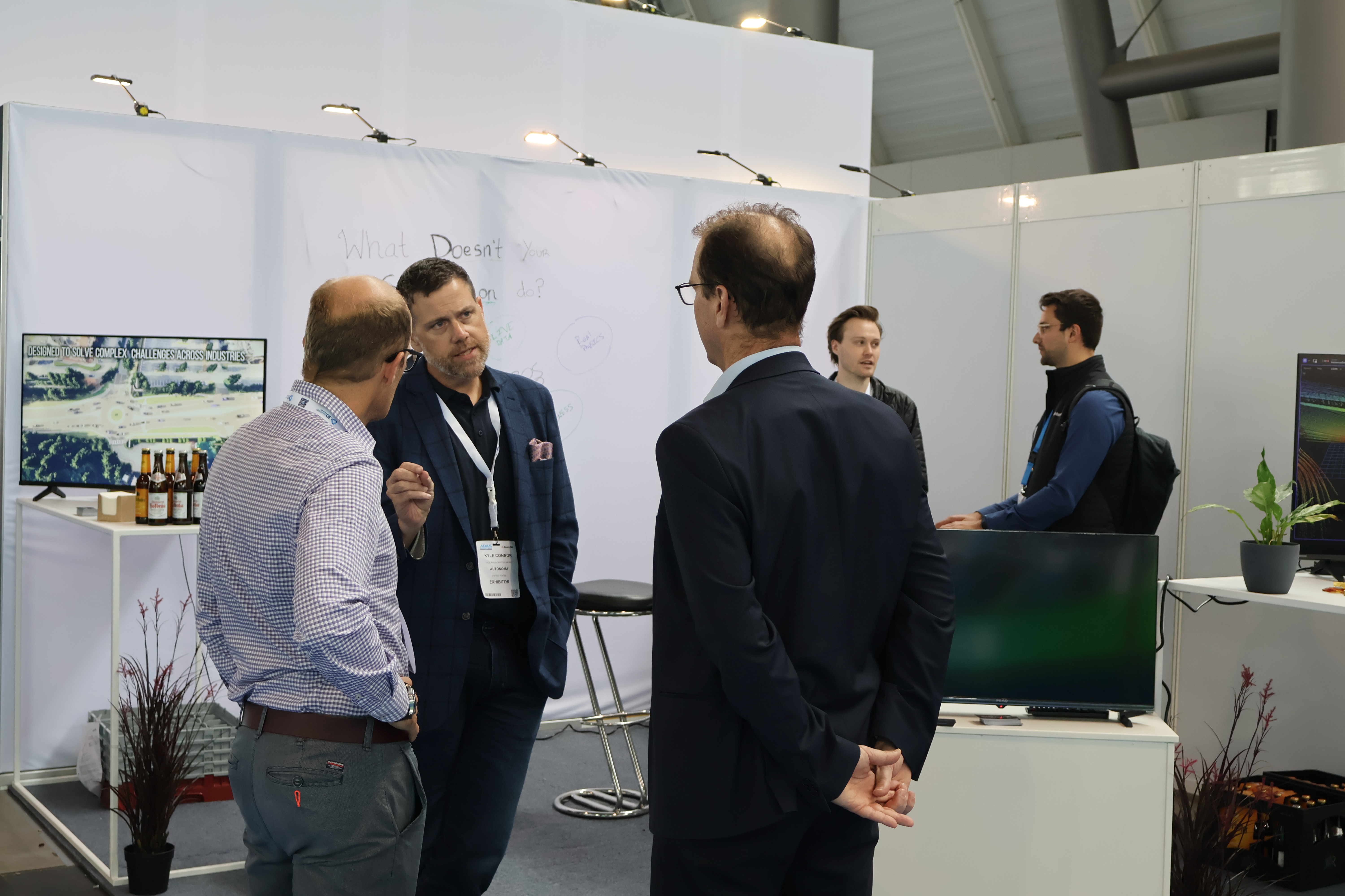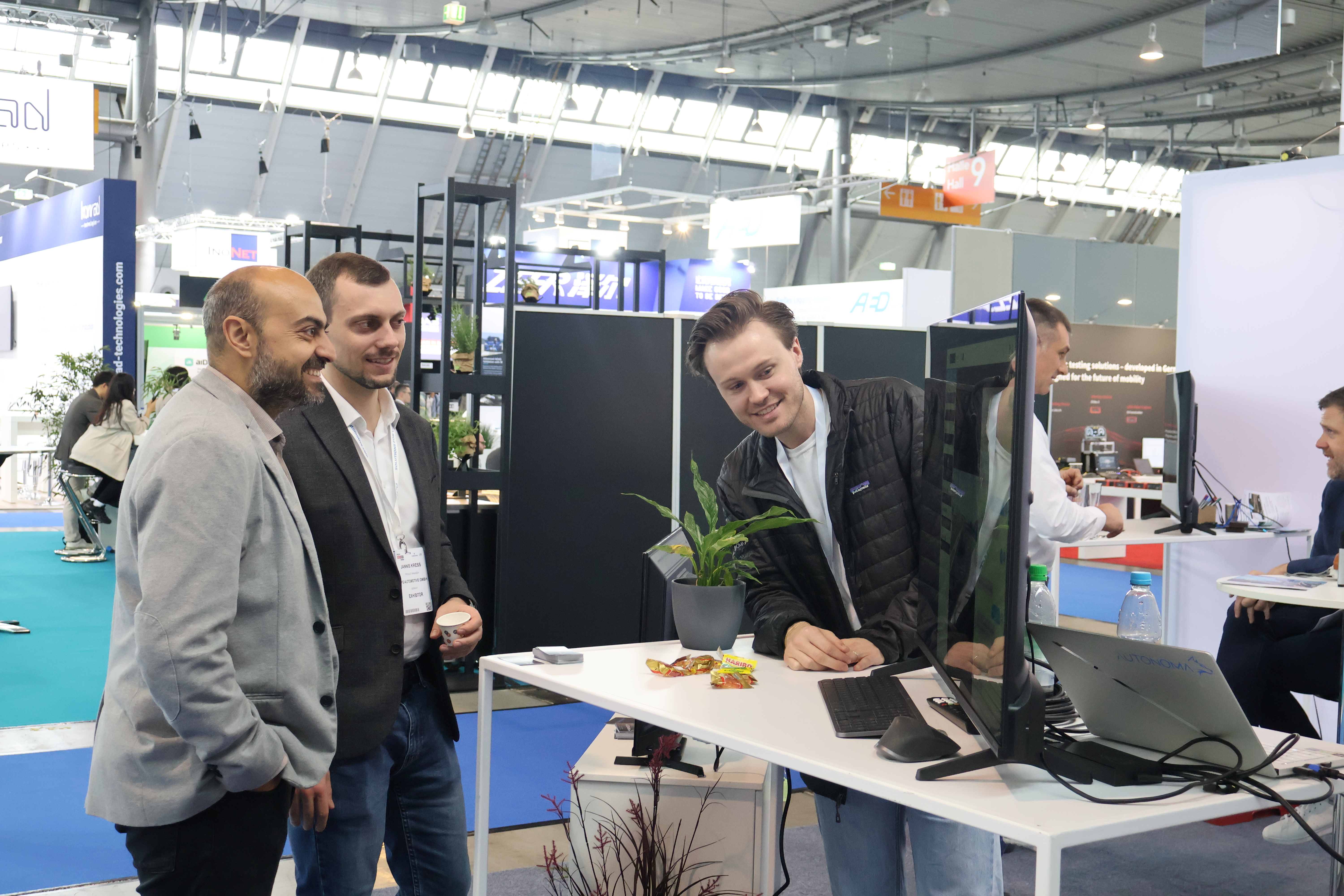 The Autonoma team engages in lively discussions at their booth.