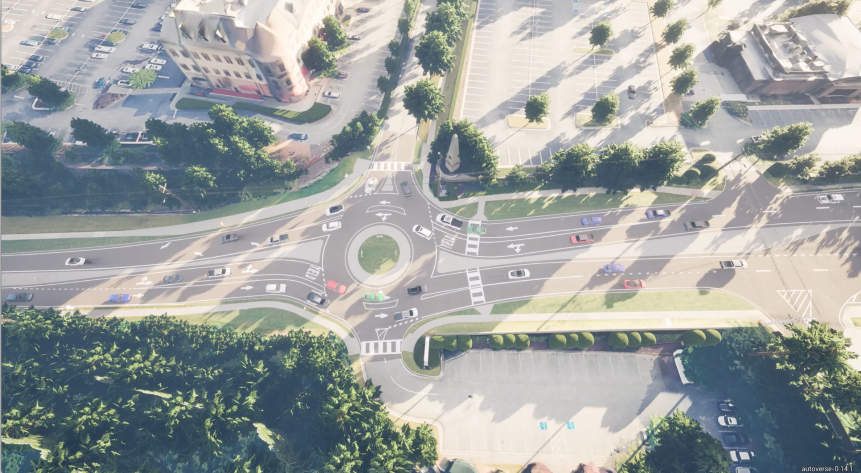 Earlier this year, Peachtree Corners partnered with Autonoma to bring a proposed roundabout project to life—virtually. Using high-fidelity simulation built with AutoVerse, the city hosted a public city hall meeting where residents experienced the intersection from every angle including aerial views and driver perspectives.